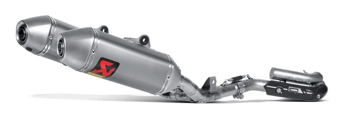 The Akrapovic Evolution Exhaust system is constructed entirely of titanium and is the flagship of the Akrapovic line. Developed by the same group of engineers who work with championship-winning race teams in World Motocross, Supercross and World Enduro Classes and armed with the feedback provided by champions like Ryan Dungey and Antonio Cairoli, Akrapovic has designed their exhaust systems to deliver increased performance throughout the entire RPM range. Increasing power and torque throughout the entire RPM range offers a much smoother, controllable power delivery and is key for maximum performance and handling.