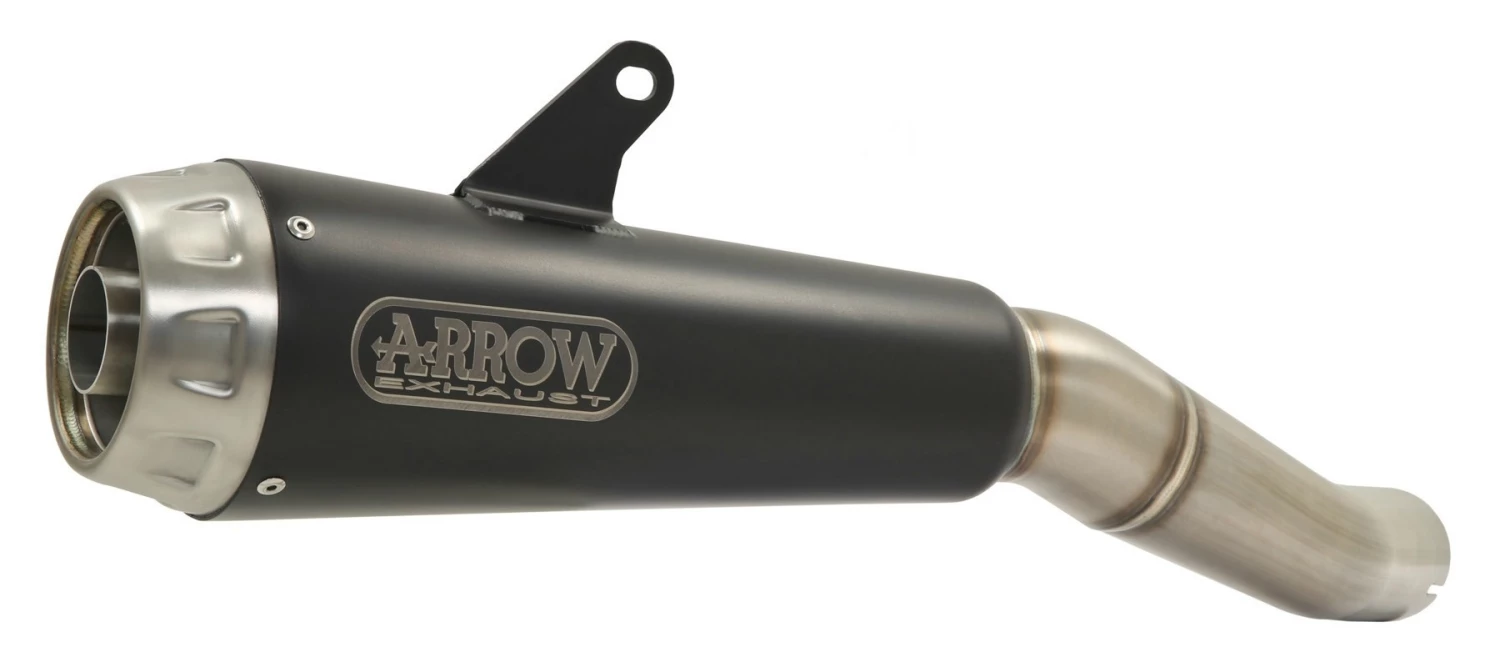 From its cone-shaped sleeve, angled round end cap, integrated exhaust hanger and TIG welding all around, this exhaust screams performance without compromise. Available in either titanium or NiChrome. NiChrome alloy is a blend of stainless steel and nickle alloy that is highly heat and corrosion-resistant. Because of the internal volume and shape of the Arrow Pro-Race, Arrow was not able to produce it for every single motorcycle. Arrow found through research that most bikes exceeded acceptable noise levels when fitted with the Pro-Race Exhaust. If your motorcycle is among the chosen few, consider yourself lucky.