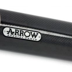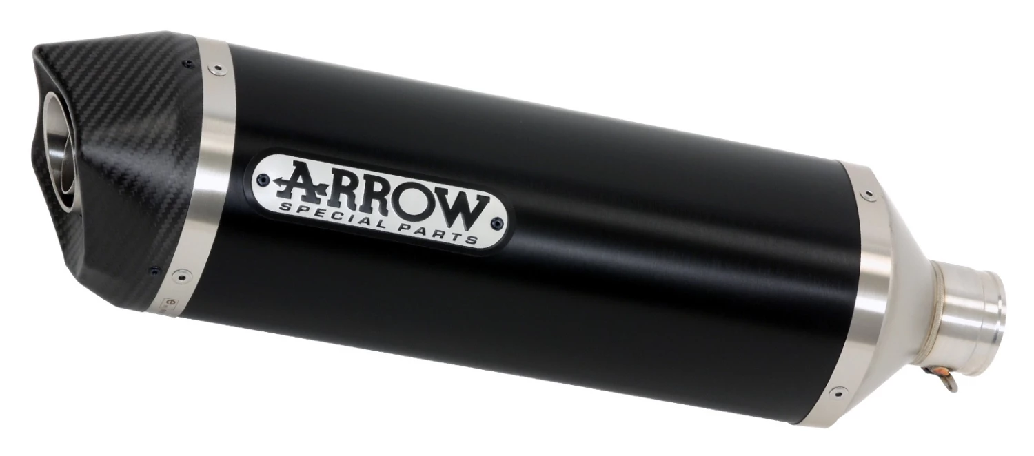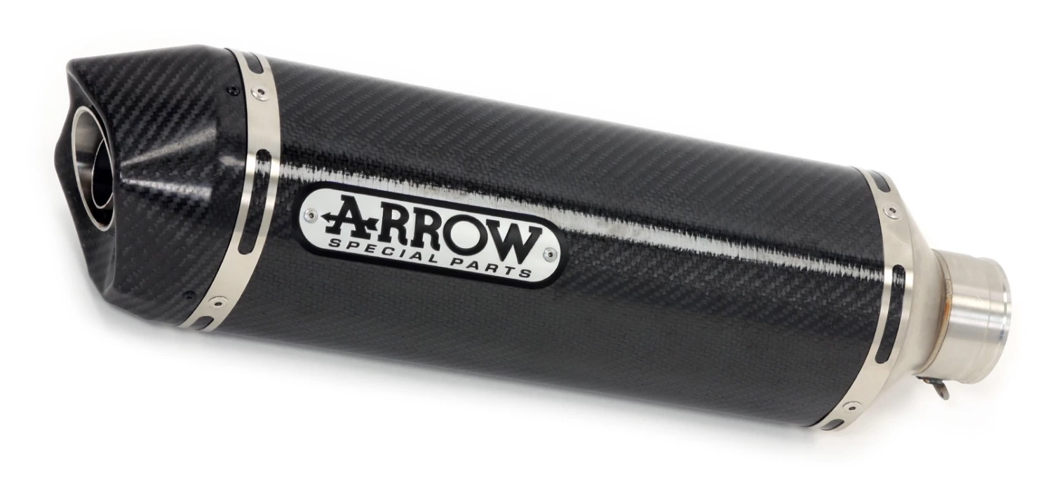 The Arrow Race-Tech exhaust features a unique, diamond shape muffler that is unlike anything else on the market. This innovative diamond shape design allows the Arrow Race Tech exhaust to have reduced dimensions compared to traditionally shaped exhausts. The exhaust also features a significant weight reduction without having to compromise internal volume which would reduce the exhaust note. The internals of the exhaust are made of stainless steel and assembly is completed by TIG welding on special jigs. The rear end caps and gas outlet are designed to optimize gas flow and minimize back pressure.Â