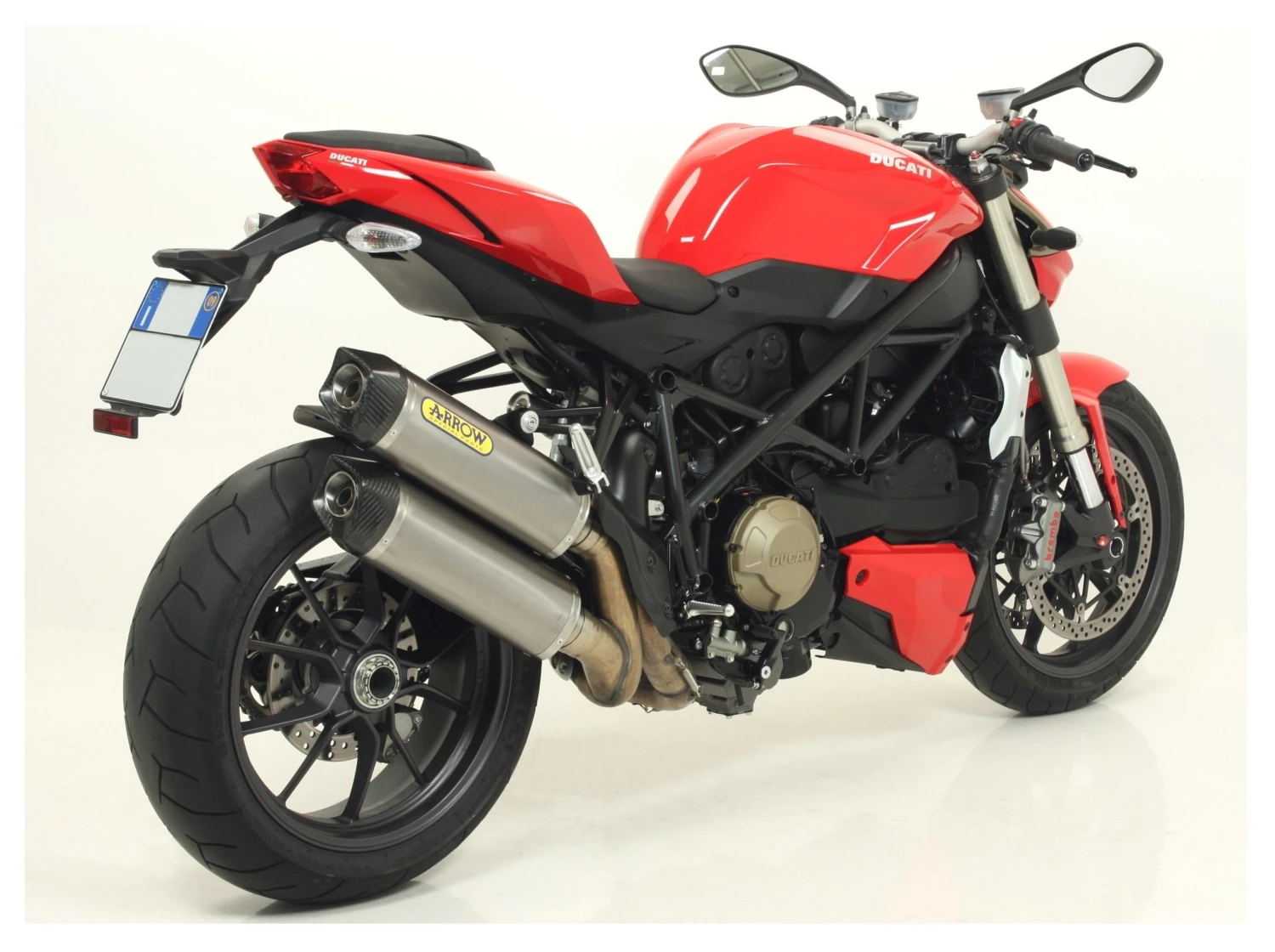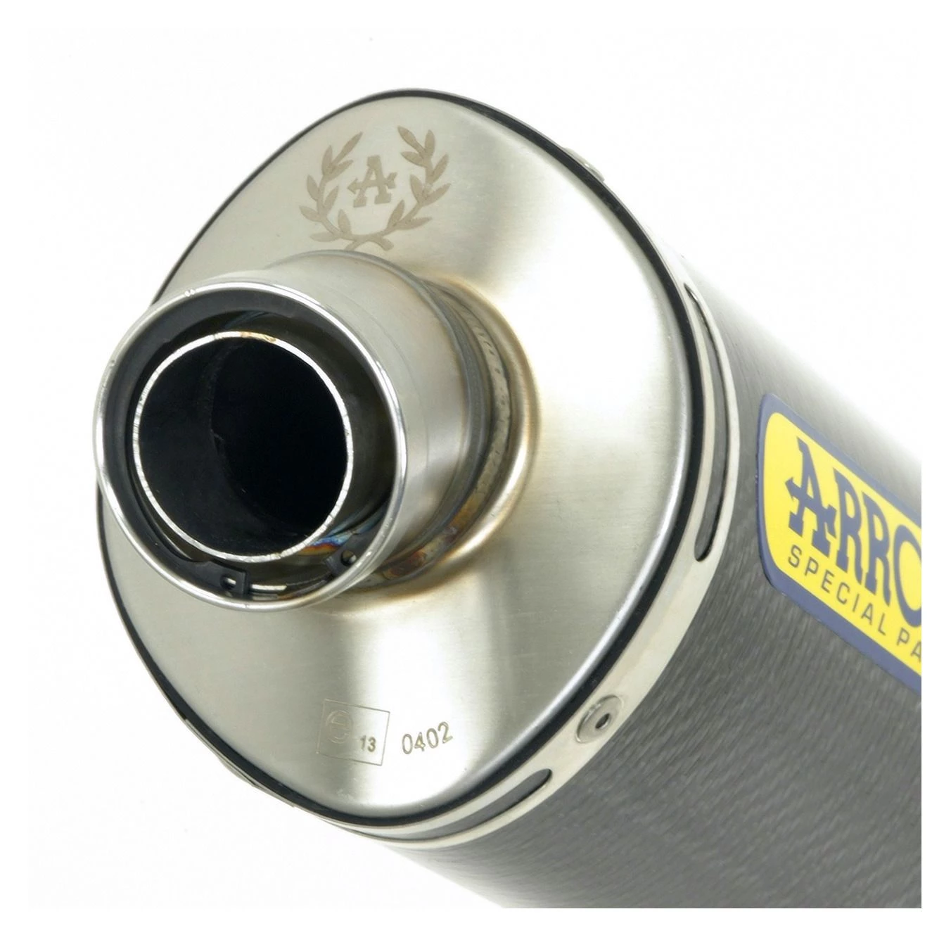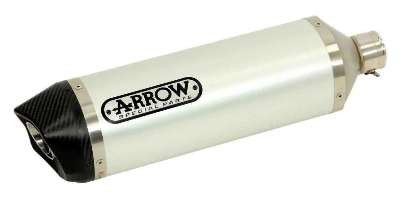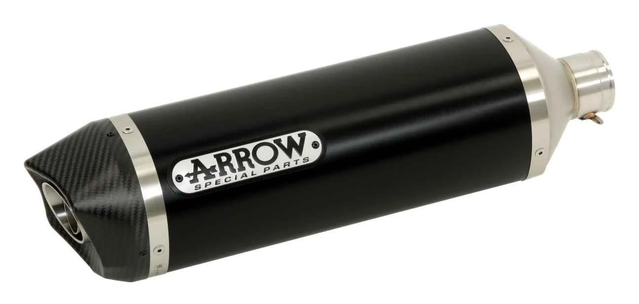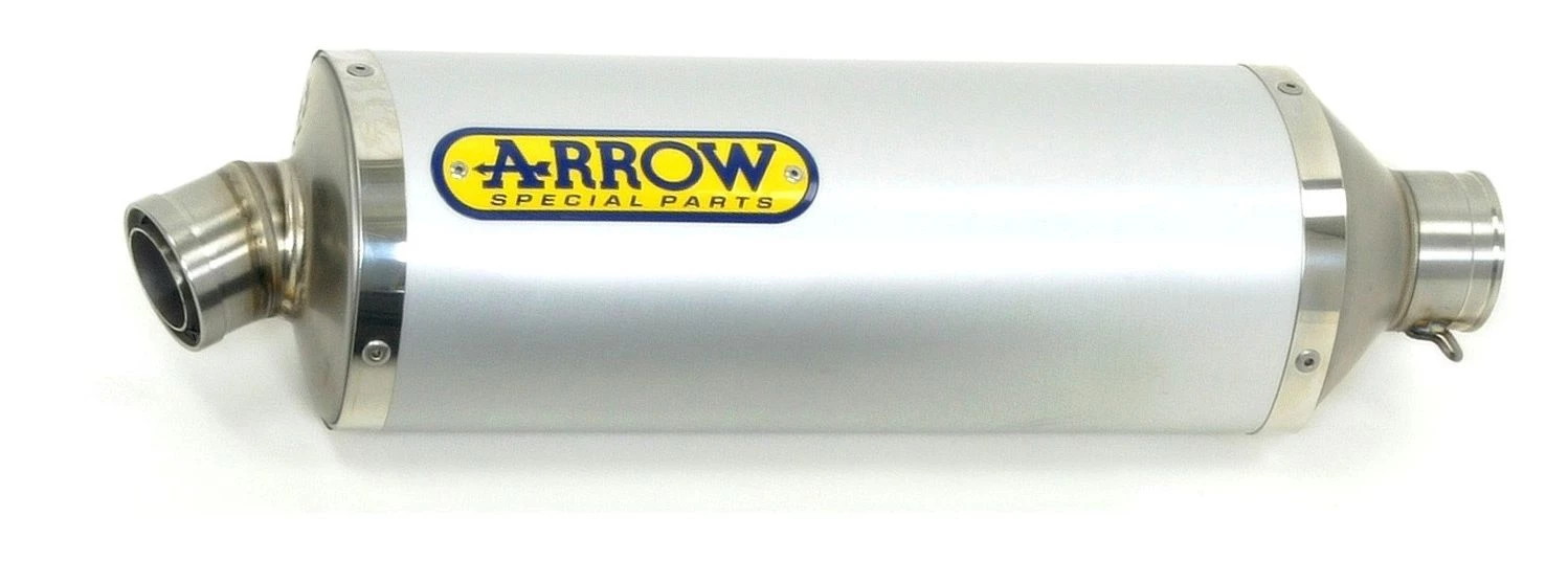 The Arrow Race-Tech exhaust features a unique, diamond shape muffler that is unlike anything else on the market. This innovative diamond shape design allows the Arrow Race Tech exhaust to have reduced dimensions compared to traditional shaped exhausts. The exhaust also features a significant weight reduction without having to compromise internal volume which would reduce the exhaust note. The internals of the exhaust are made of stainless steel and assembly is completed by TIG welding on special jigs. The rear end caps and gas outlet are designed to optimize gas flow and minimize back pressure.Â