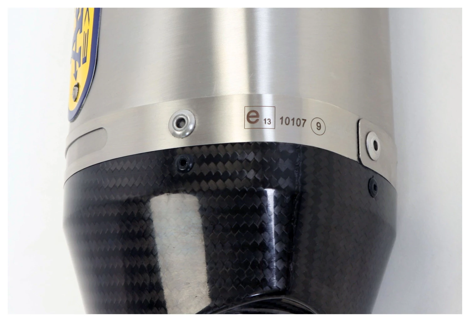 The Arrow X-Kone was originally developed for racing use on the Arrow Competition Exhaust System, now that same race track pedigree is available as a slip-on exhaust. The tapered shape of the Arrow X-Kone was developed in conjunction with the WSBK Alstare Suzuki Team to be compact, aerodynamic and to perform under race conditions. The muffler sleeve is made from a special blend of nickel and stainless steel known as NiChrome. NiChrome alloy was chosen due to its high heat and corrosion resistant properties.