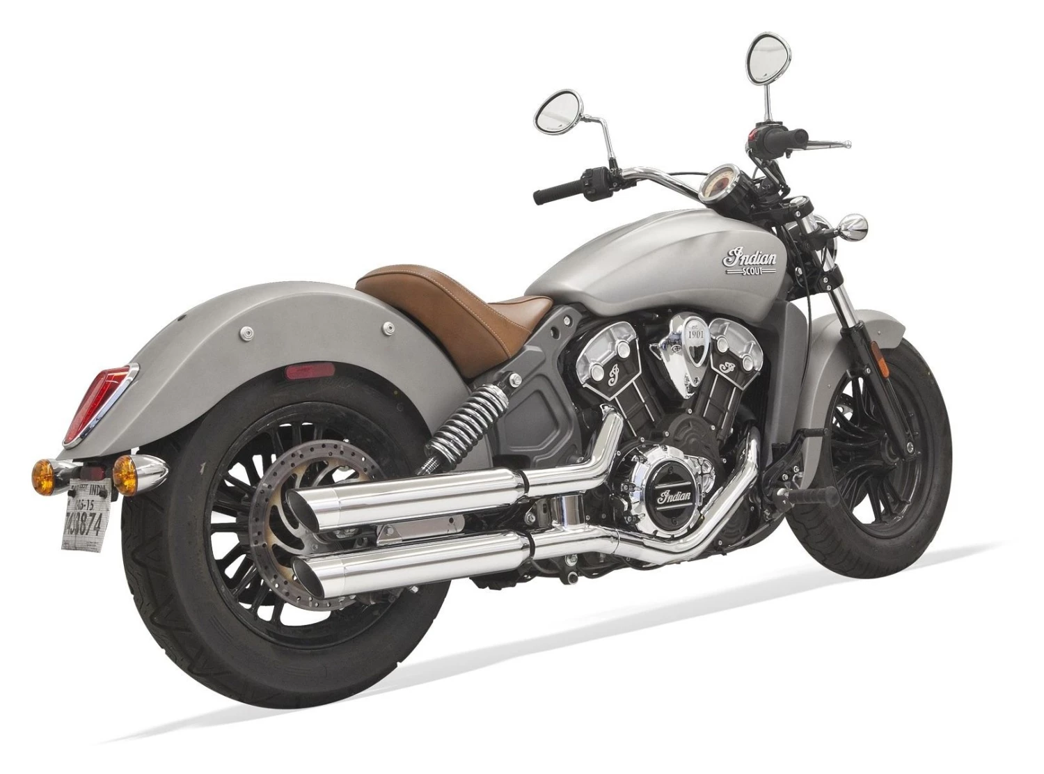 Slash cut end caps and a shorter length add style to the classic lines of the Indian Scout. Fits with OEM saddlebags.Â