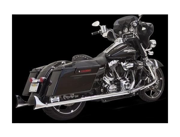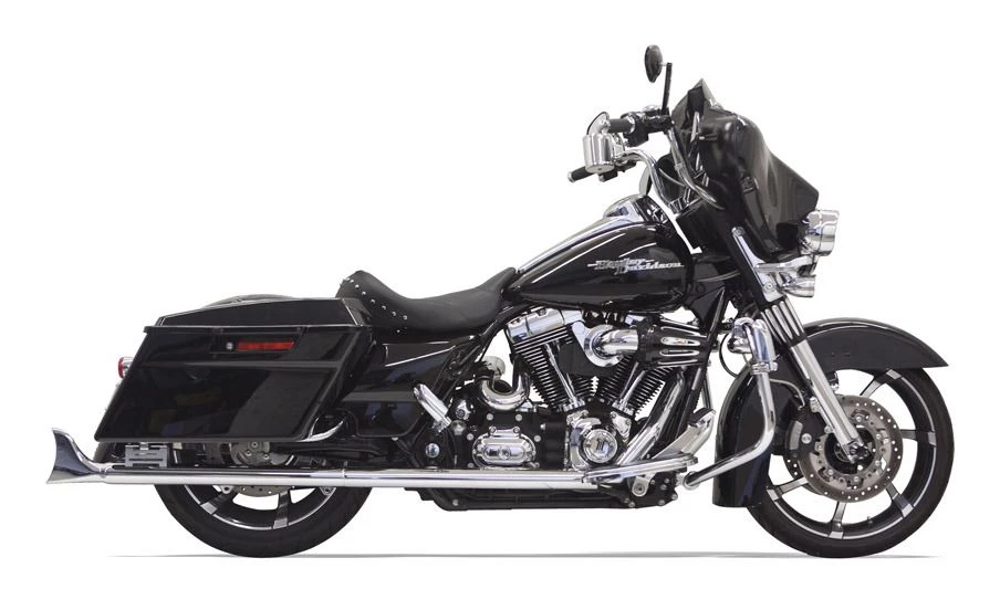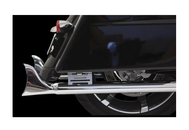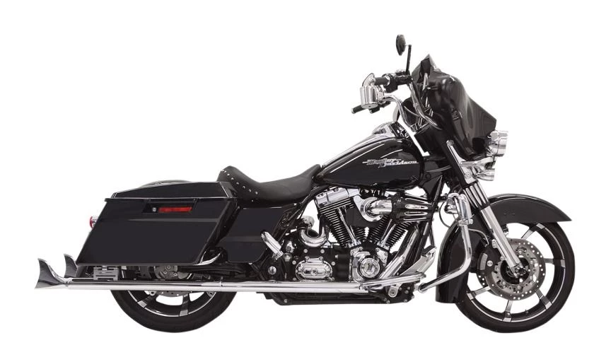 These classic fishtail mufflers are constructed from 16-gauge steel with a beautiful chrome finish. Their unique style is complimented by an aggressive exhaust note and the performance that Bassani is know for. They easily mount to your Touring bike’s stock dual head-pipes and are available in two different lengths, either with or without baffles.Â