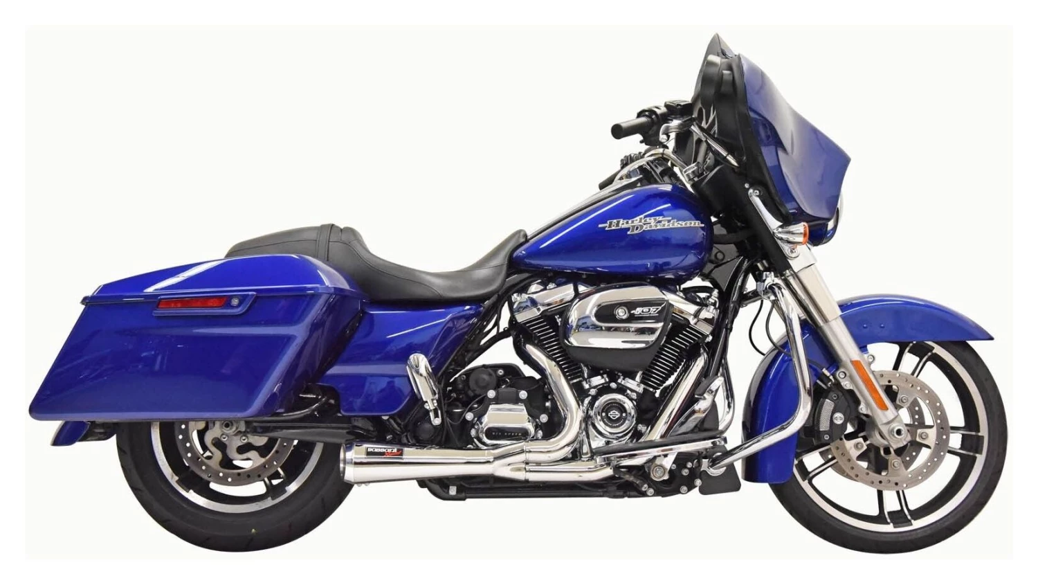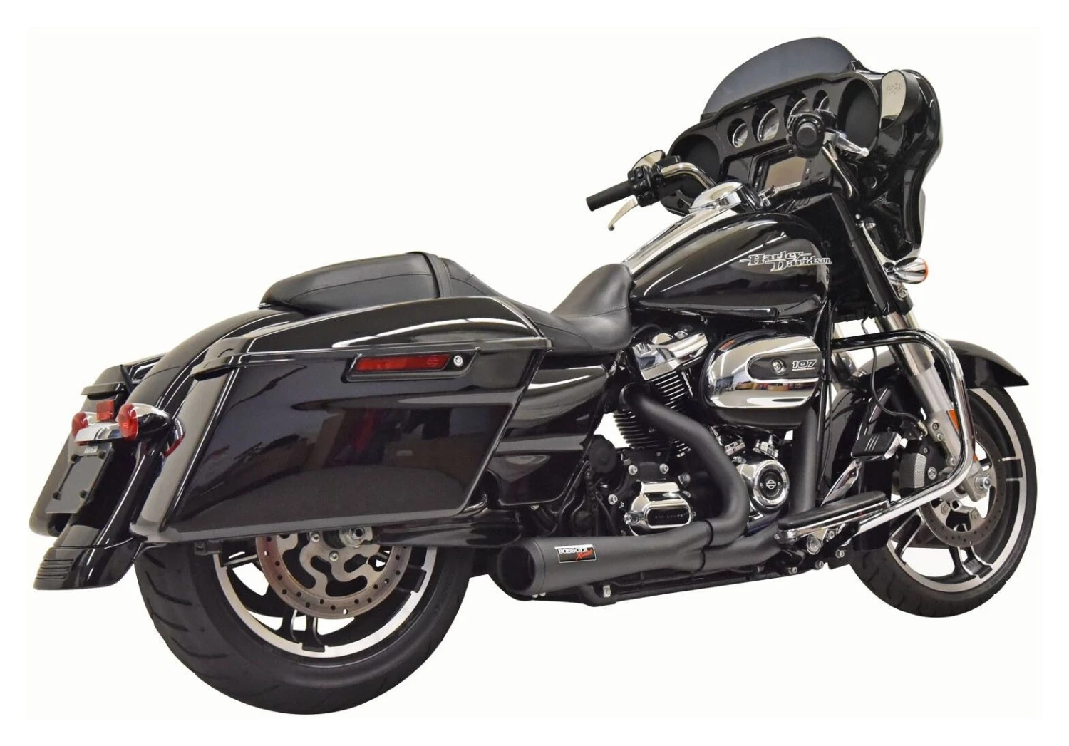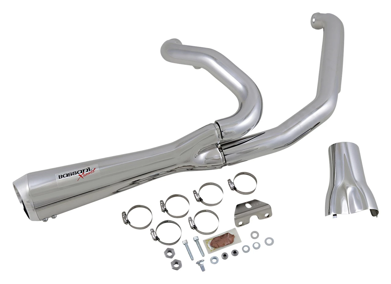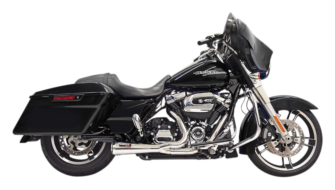 These Road Rage pipes give your bike a quality performance look and sound that only Bassani can provide. Made in the USA, this full 2-into-1 system utilizes a megaphone-style muffler with a removable baffle for unmatched sound. The Road Rage Full Exhaust will leave your bagger with a look that matches its new bark.Â