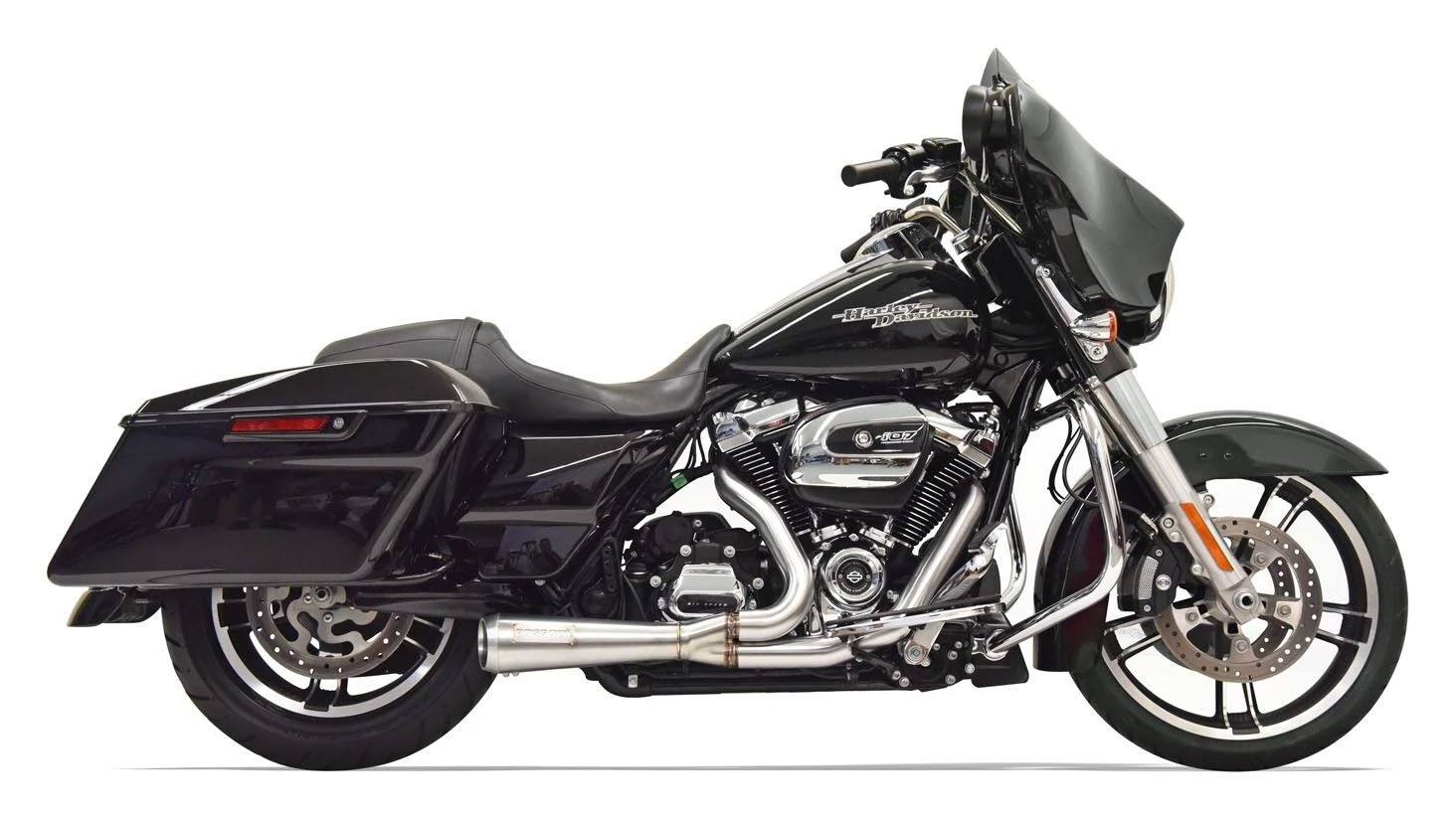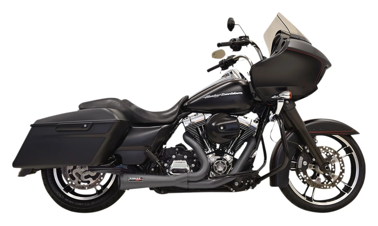 These Road Rage pipes give your bike a quality performance look and sound that only Bassani can provide. Made in the USA, this full 2-into-1 system utilizes a megaphone-style muffler with a removable baffle for unmatched sound. The Road Rage Full Exhaust will leave your bagger with a look that matches its new bark.Â