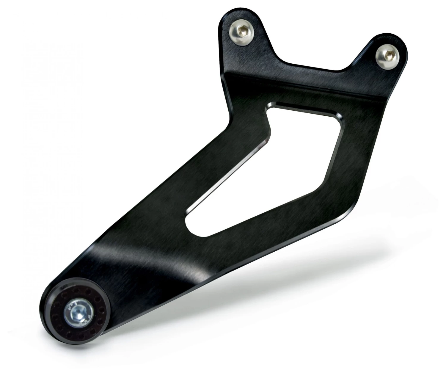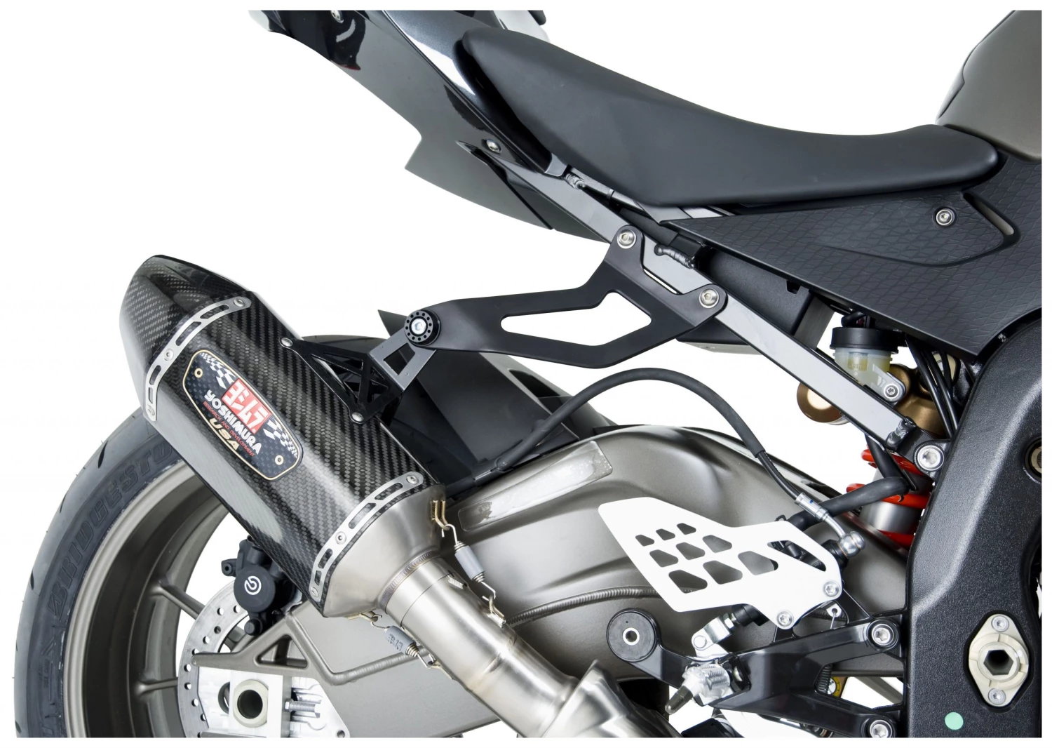 Dropping weight from the bike is one of the most efficient ways of improving lap times on the track. If you have a Yoshimura exhaust system, why not take weight savings to max with this lightweight aluminum muffler bracket. Replaces the heavy, bulky stock unit and provides a secure mount for your Yoshimura exhaust system. This Aluminum bracket features a durable black anodized finish to compliment the bikes already sleek styling.