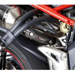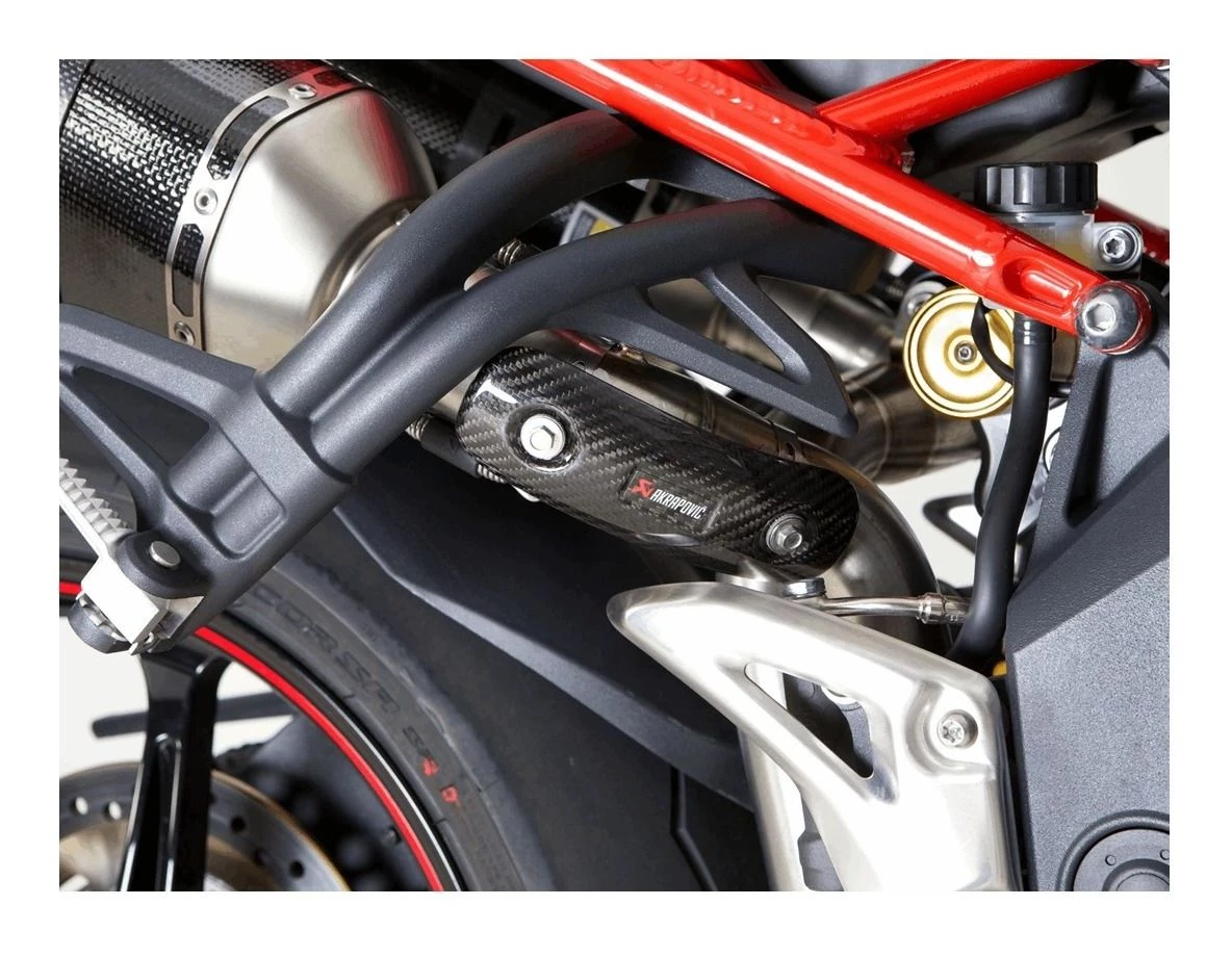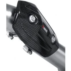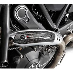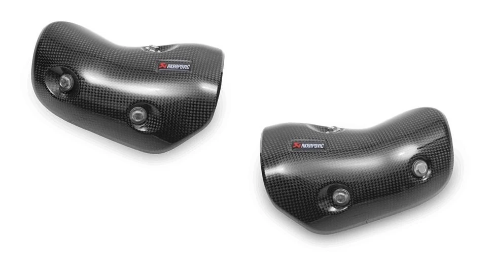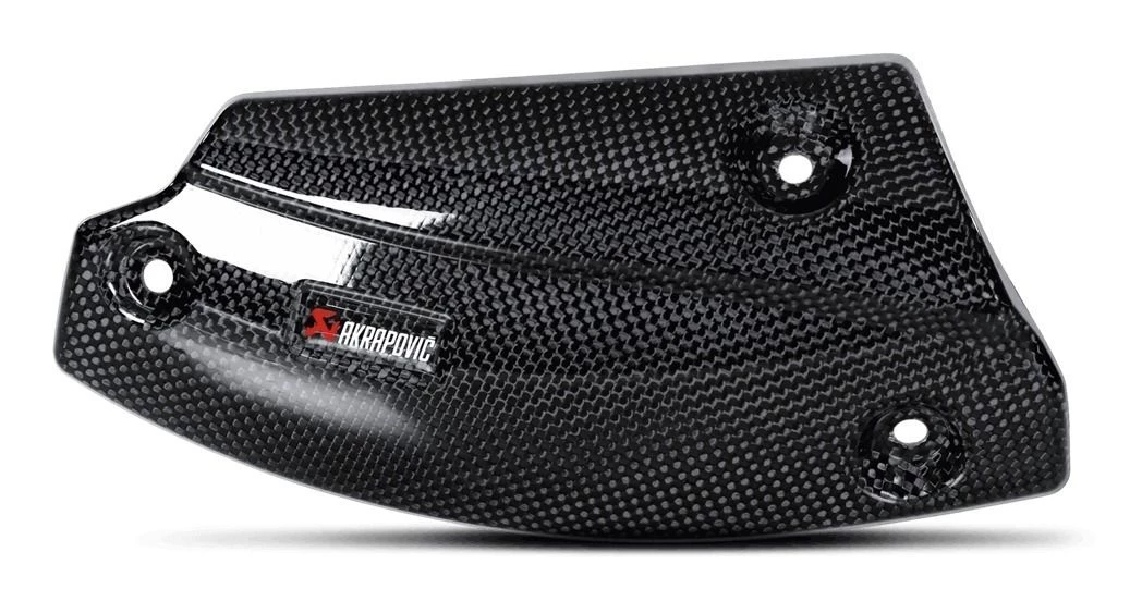 The Akrapovic Carbon Fiber Heat Shield for Akrapovic exhaust systems protects you or your passenger, your luggage, as well as your exhaust investment, from injury or damage. Adding a heat shield not only compliments the look of your bike and your exhaust, but also ensures you can ride worry free knowing that those hot hot pipes are safely guarded against unwanted contact.Â