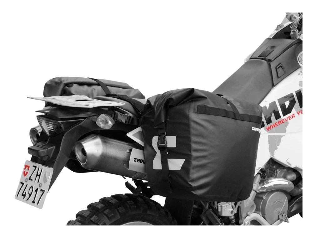 The Enduristan Inferno Heat Shield keeps your panniers and side panels away from the infernal heat of your muffler. One or more properly installed Inferno Heat Shields can reliably avoid any meltdown. Exhaust systems can get as hot as 650°C – neither your soft luggage nor its contents are able to sustain such temperatures. However, only a small distance between the muffler and the luggage is enough to let the heat dissipate. Additionally, the forced convection of the airflow will further improve the cooling capacity.