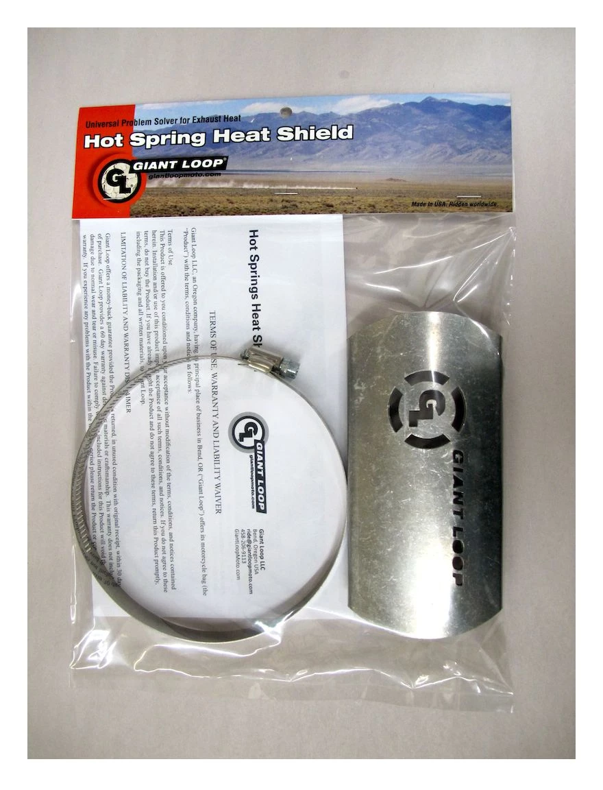 Donāt get burned! Giant Loopās ingeniously simpleĀ and effective exhaust shield has been re-designed. Protects bags and bodywork from heat damage.