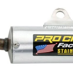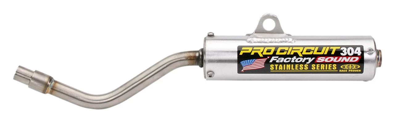 The Pro Circuit 304 silencer is compatible with most two-stroke applications and is an excellent choice for anyone searching for a performance enhancing replacement pipe. Offering a slightly longer aluminum canister body than most OEM silencers, the Pro Circuit 304 pipe will help improve top-end power and lower noise output.