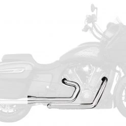 True dual head pipes with no crossover or catalytic converter for a cooler running bike. Compatible with all Freedom Performance slip on mufflers for Indian models and most other aftermarket slip on mufflers.