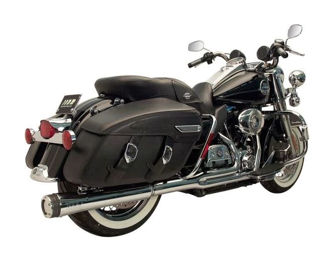 The Supertrapp Fat Shot provides substantial performance gains. The 1 3/4″ primary head pipes flow into a 2 1/2″ collector then on to a large 4″ muffler body.Â