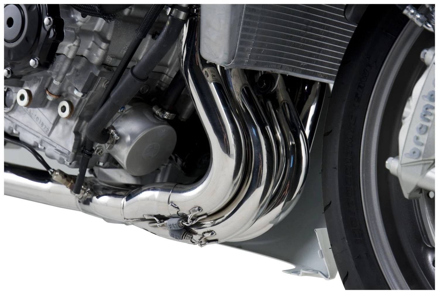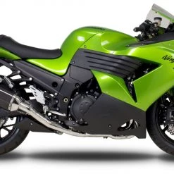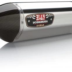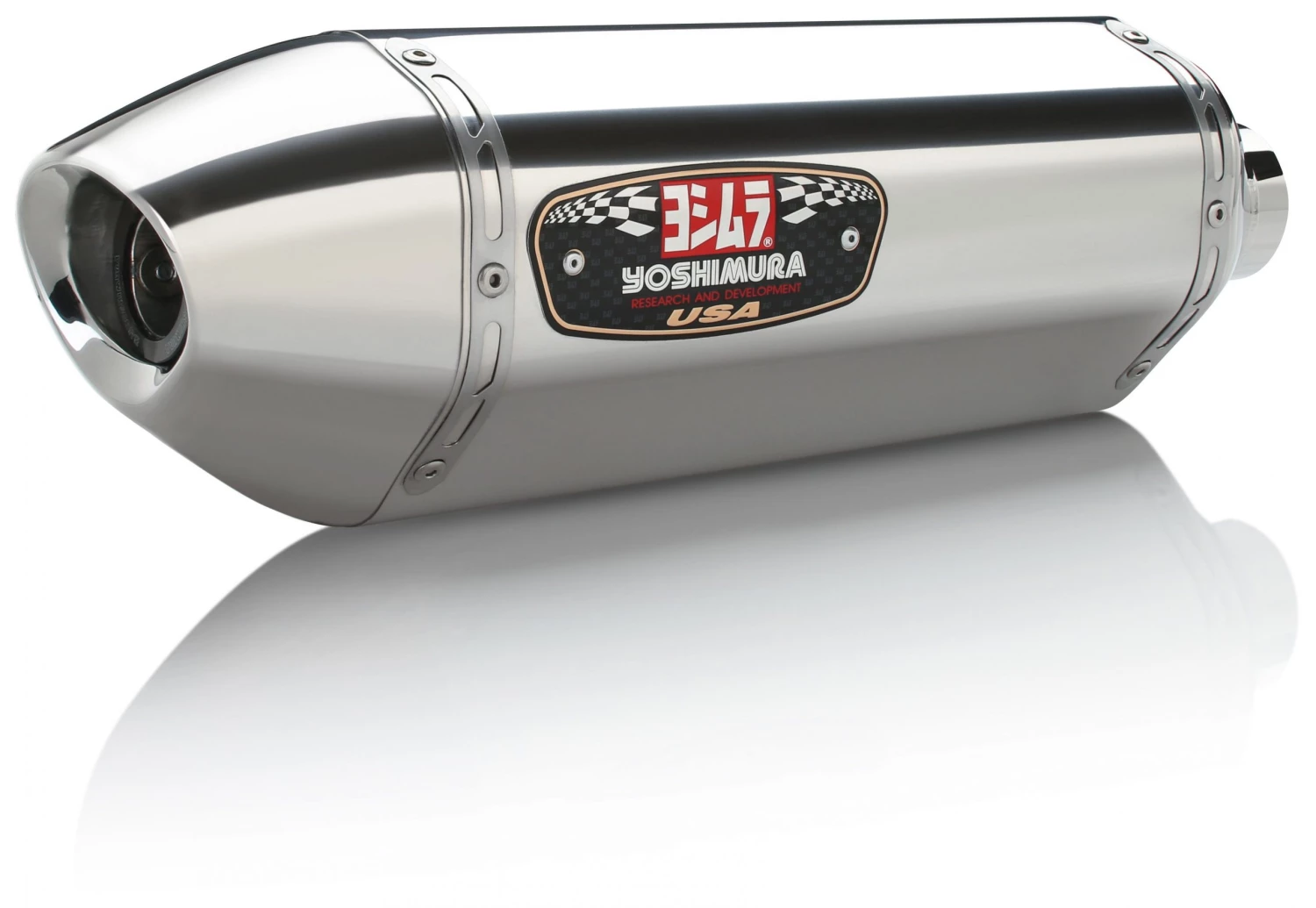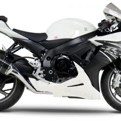 The Yoshimura R-77 Exhaust System was designed with the needs of the racer in mind. Using the feedback received from the Yoshimura Road Racing Team, their designers came up with a muffler that is constructed from lightweight materials, grants a significant boost in power thanks to its high-flow trapezoidal shape and gives your bike a great sound without being excessively loud. When combined with the stainless steel headers and mid-pipes, the muffler will help your engine make even more power and reduce weight. The end result is a complete exhaust system that will let your motorcycle reach its maximum potential!