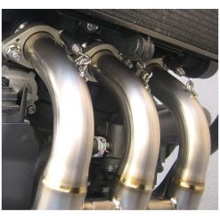 The titanium headers feature an aggressive tapered design with cross-over pipes, these features allow for an increased throttle response and low to mid range power delivery while increasing the peak power output. Incorporated into the mid-pipe are two O2 sensor bungs, one for the OEM O2 sensor and the other allows for installation of a Dynojet Auto Tune O2 sensor. Graves advanced welding processes reduce oversized welds that can cause excessive heat buildup. A special pipe bending technique known as mandrel bending is used for all Graves exhausts to prevent wrinkles and ovalization of the exhaust pipes.