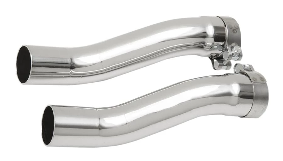These handy exhaust adapters allow you to use Cobra slip-on mufflers on your Tri-Glide. The chromed s-pipes come complete with exhaust clamps.Â
