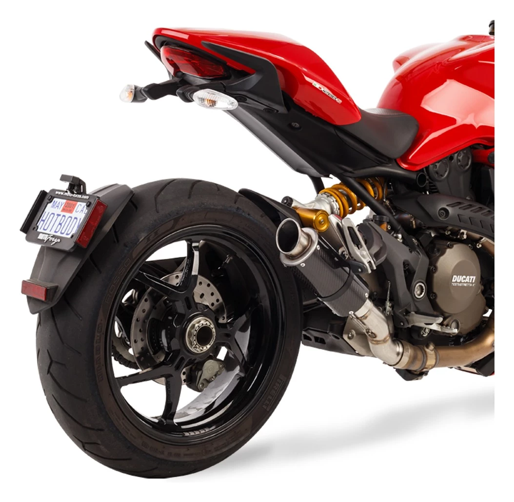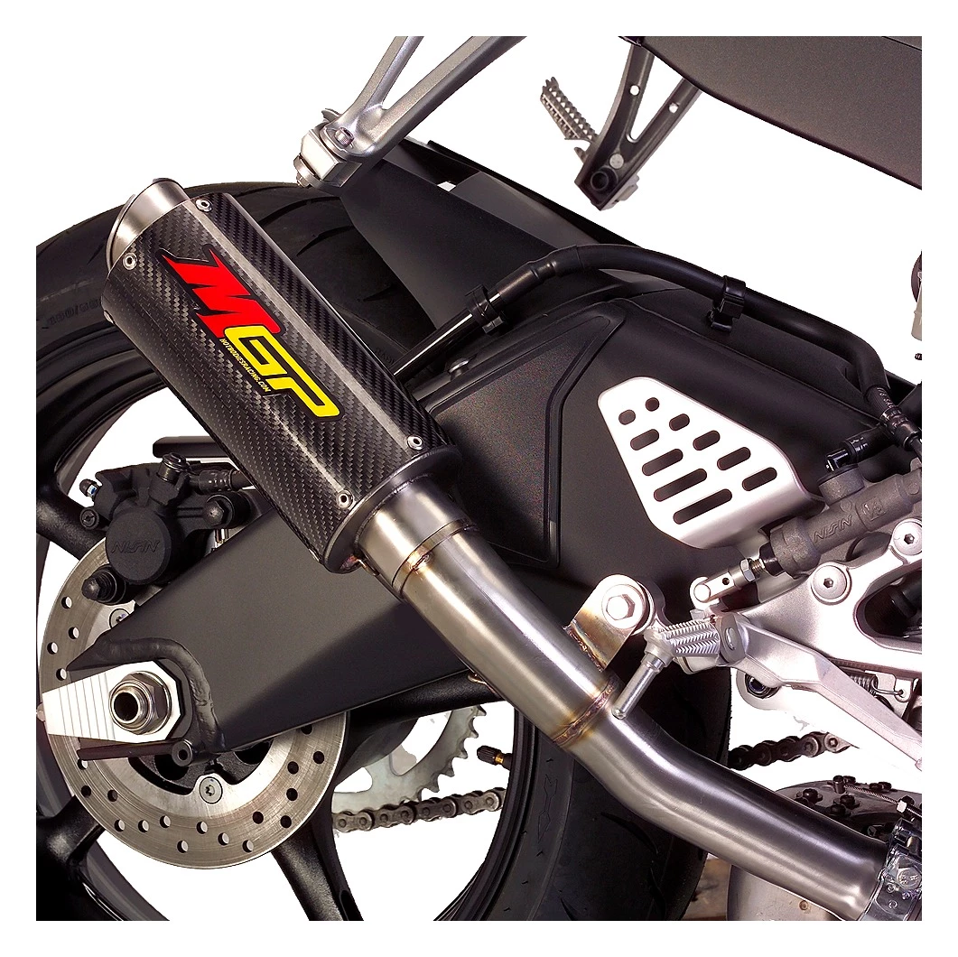 This slip-on from Hotbodies Racing is a quick and easy way to give your bike that MotoGP look. This low profile pipe is lighter than stock and bolts right up to your OEM exhaust’s location with zero modifications. In addition to making your bike look the part, this slip-on will give your bike a loud and aggressive exhaust note that would make any race team proud.