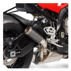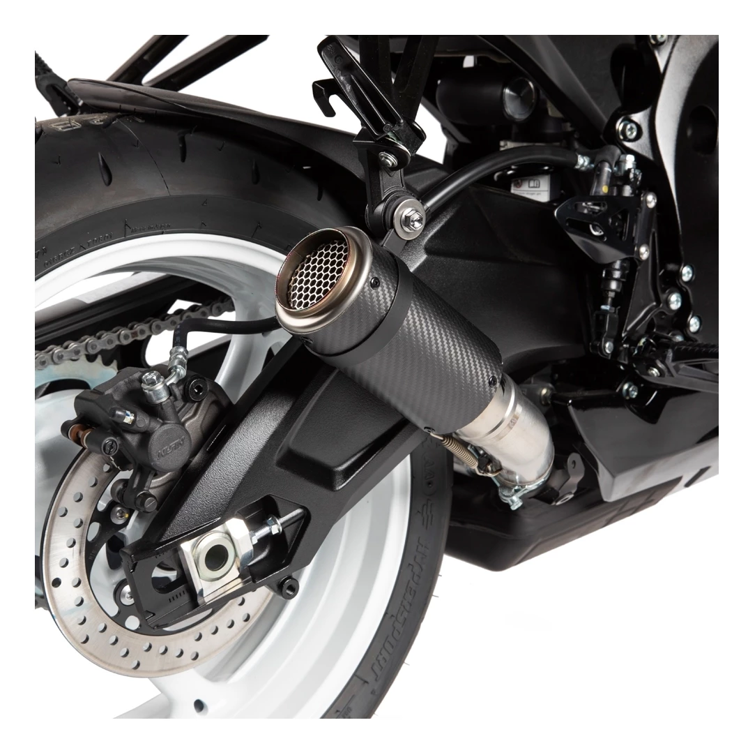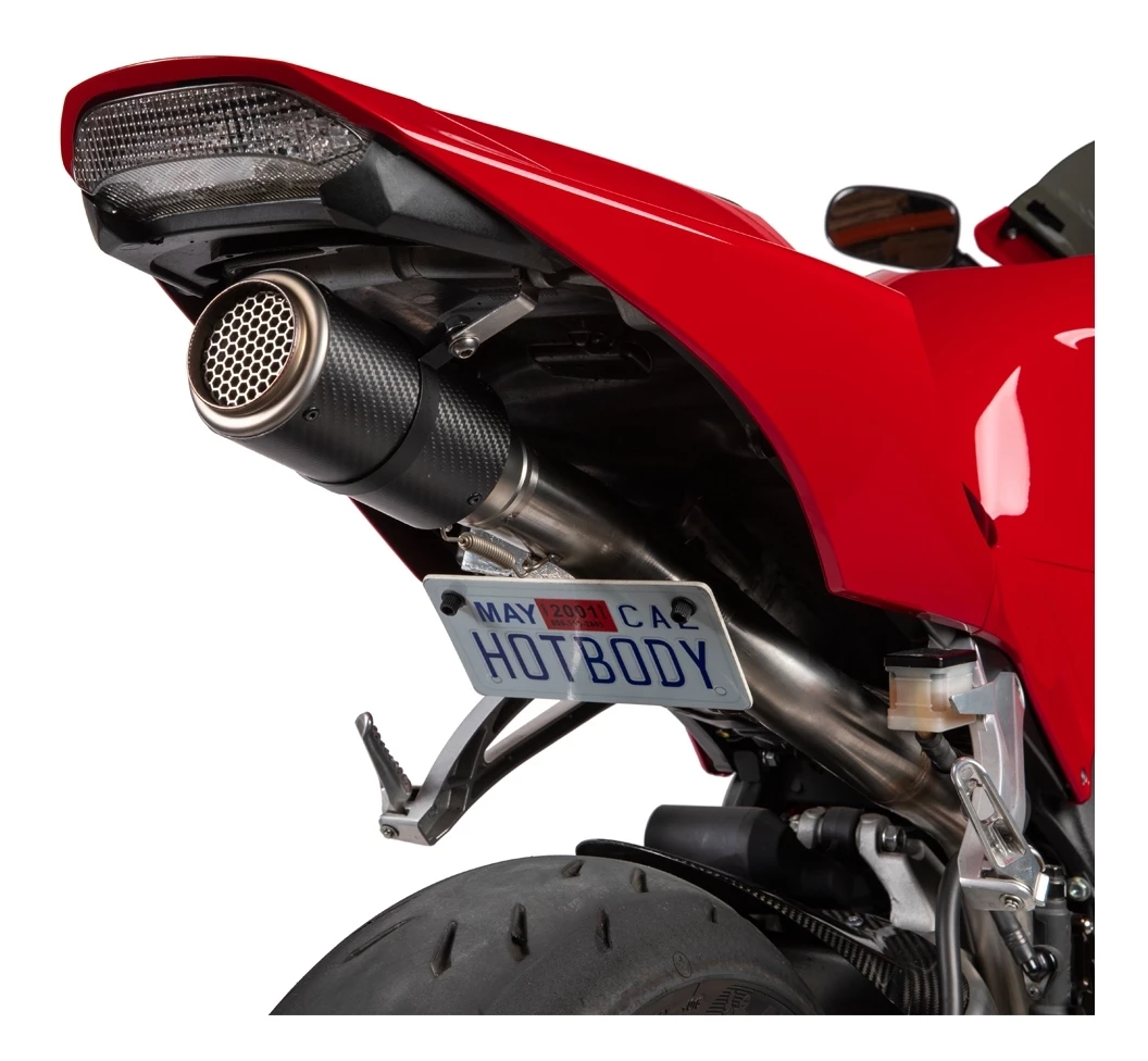 Manufactured in Italy, the Hotbodies MGP Stinger Slip-On Exhaust is full of European race-inspired character. It features an extremely compact carbon fiber and stainless steel muffler. The carbon fiber is finished in a matte finish giving it a stealthy appearance. The honeycomb exhaust outlet was directly inspired by the exhausts found on the MotoGP grid. Some even say the noise emitted from the Stinger Exhaust resemble a MotoGP bike.