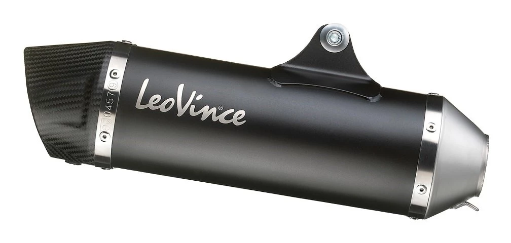 The Nero Slip-On Exhaust from Leo Vince features a blacked out palette and aggressive styling that makes it a clear choice for style conscious riders. The muffler’s body and mid-pipes are constructed from AISI 304 stainless steel and finished with a durable, ceramic-based black paint, making it both light and resistant to impact. The final piece of the puzzle is a beautiful, entirely carbon fiber end cap that features an aggressive design that compliments that blacked out aesthetic of the Nero perfectly.Â