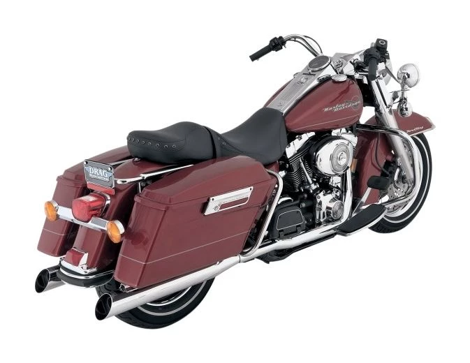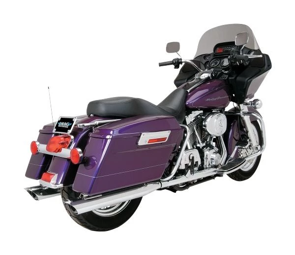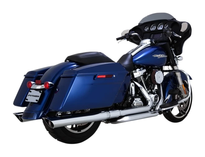 The latest top-shelf offering in the Python exhaust line. High-velocity shielded muffler cores offer protection from heat discoloration while producing outstanding performance. They feature the Python logo on the top of each muffler. Aggressive exhaust note attests to the marked gains you will feel in torque and horsepower. Matched with Python True Dual Headers, the Python Slip-on Mufflers make the ultimate true dual system. The optional Competition & Quiet Baffles are also available.
