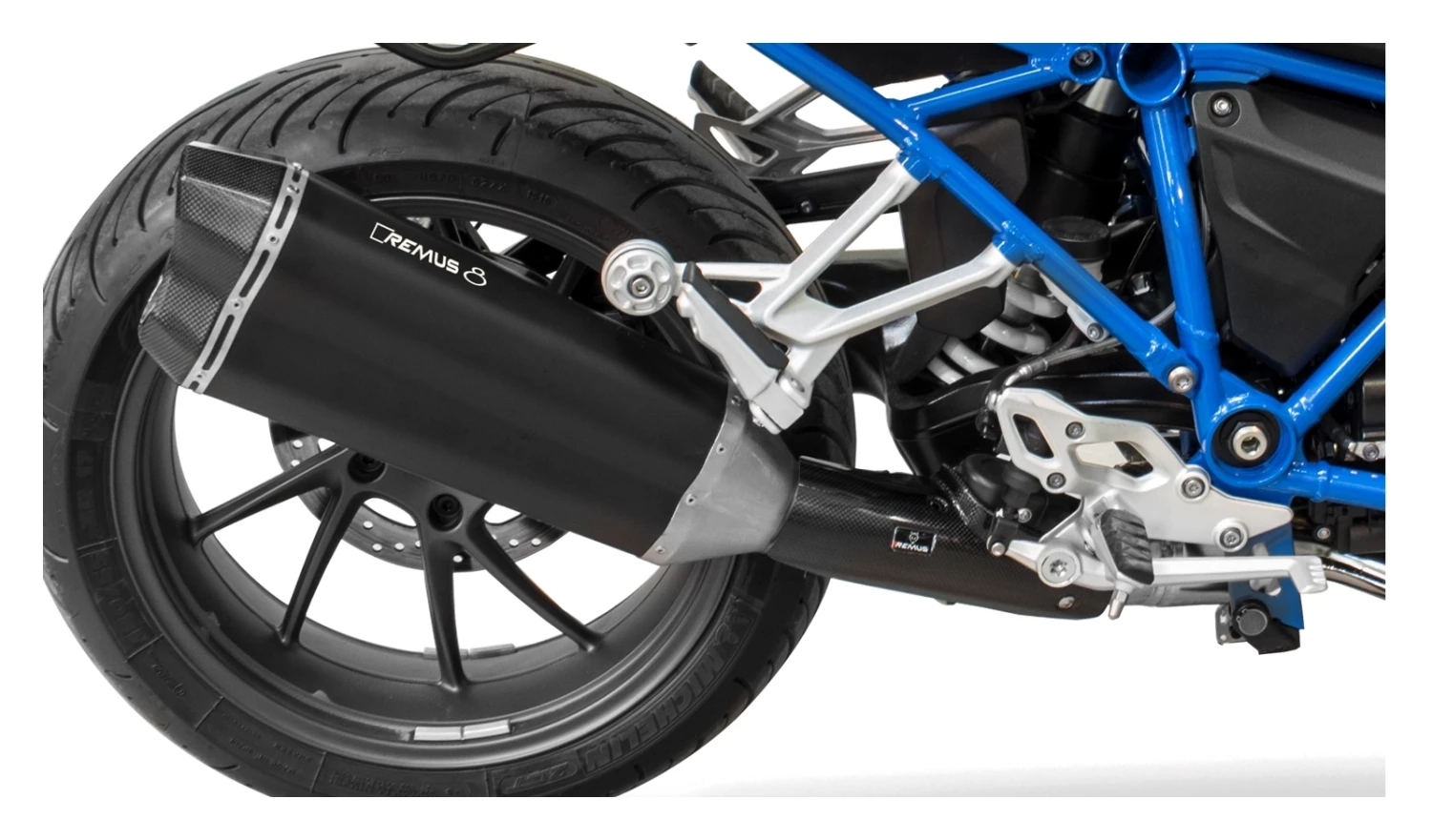 The slim Remus 8 mounts with a bracket style connection that leaves the beautiful muffler unobstructed and doesn’t interfere with most standard luggage.Â