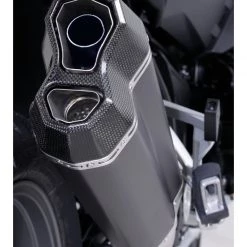 The Remus 8 Slip-On Exhaust features a unique stacked hexagon design that compliments the aesthetics of large adventure bikes.