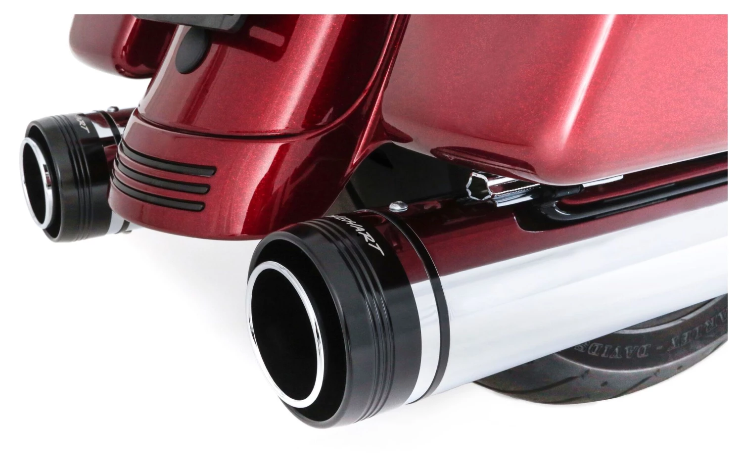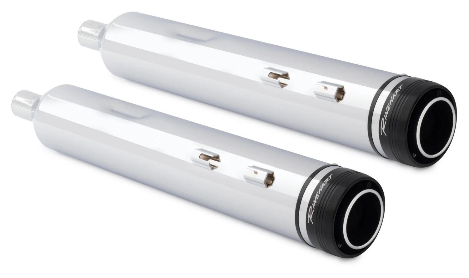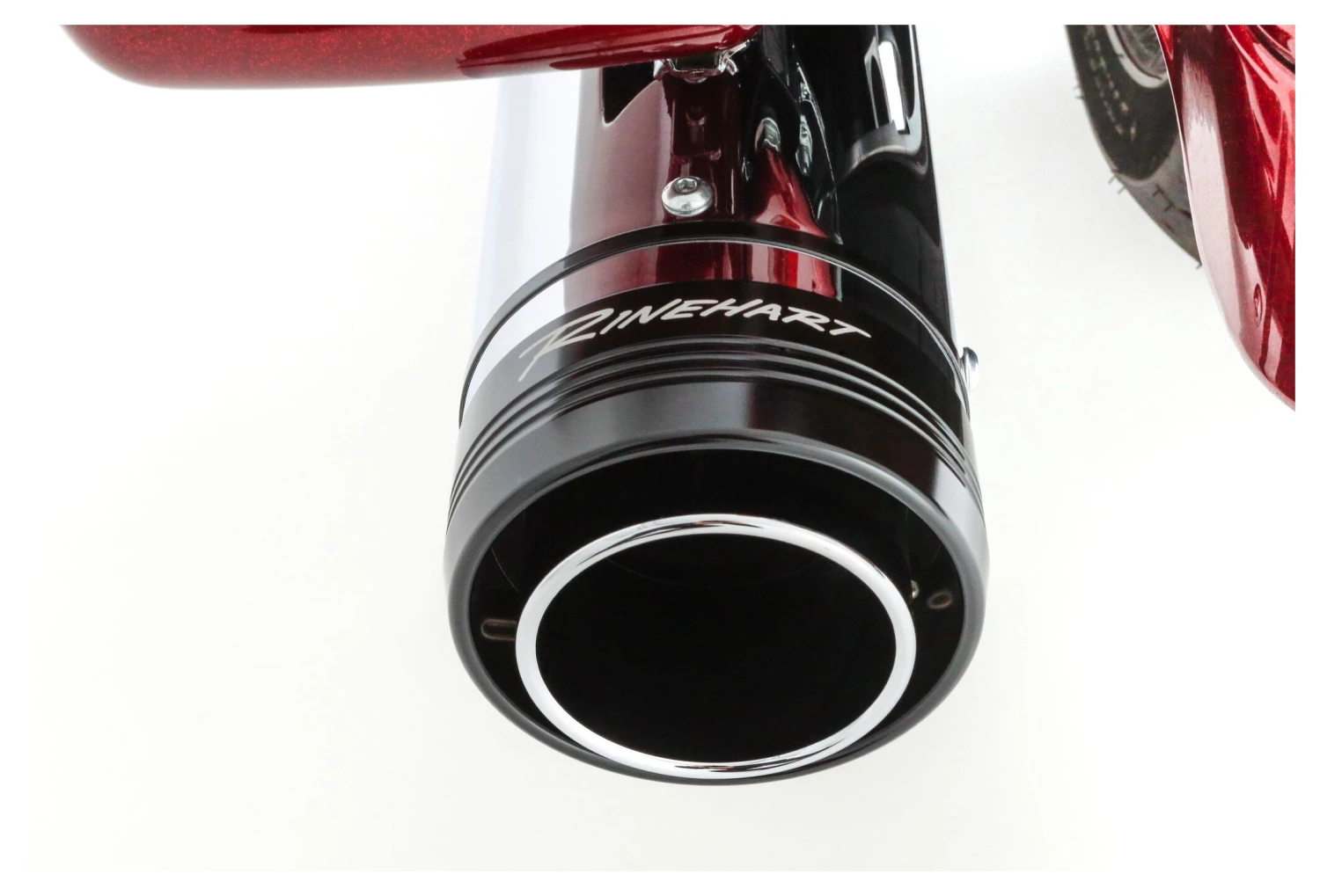 Stunning 4.5″ slip-on mufflers for Harley-Davidson touring models will add the perfect mix of both performance and style to your motorcycle. Proprietary technology in the internal design of these Slip-Ons maximize both torque and horsepower, letting the rider actually feel the performance. Rinehart Racing 4.5” slip on mufflers are characterized and easily identified by the iconic sound of Rinehart Racing- a deep throaty yet crisp rumble, letting everyone know that you are riding the industry’s best exhaust.