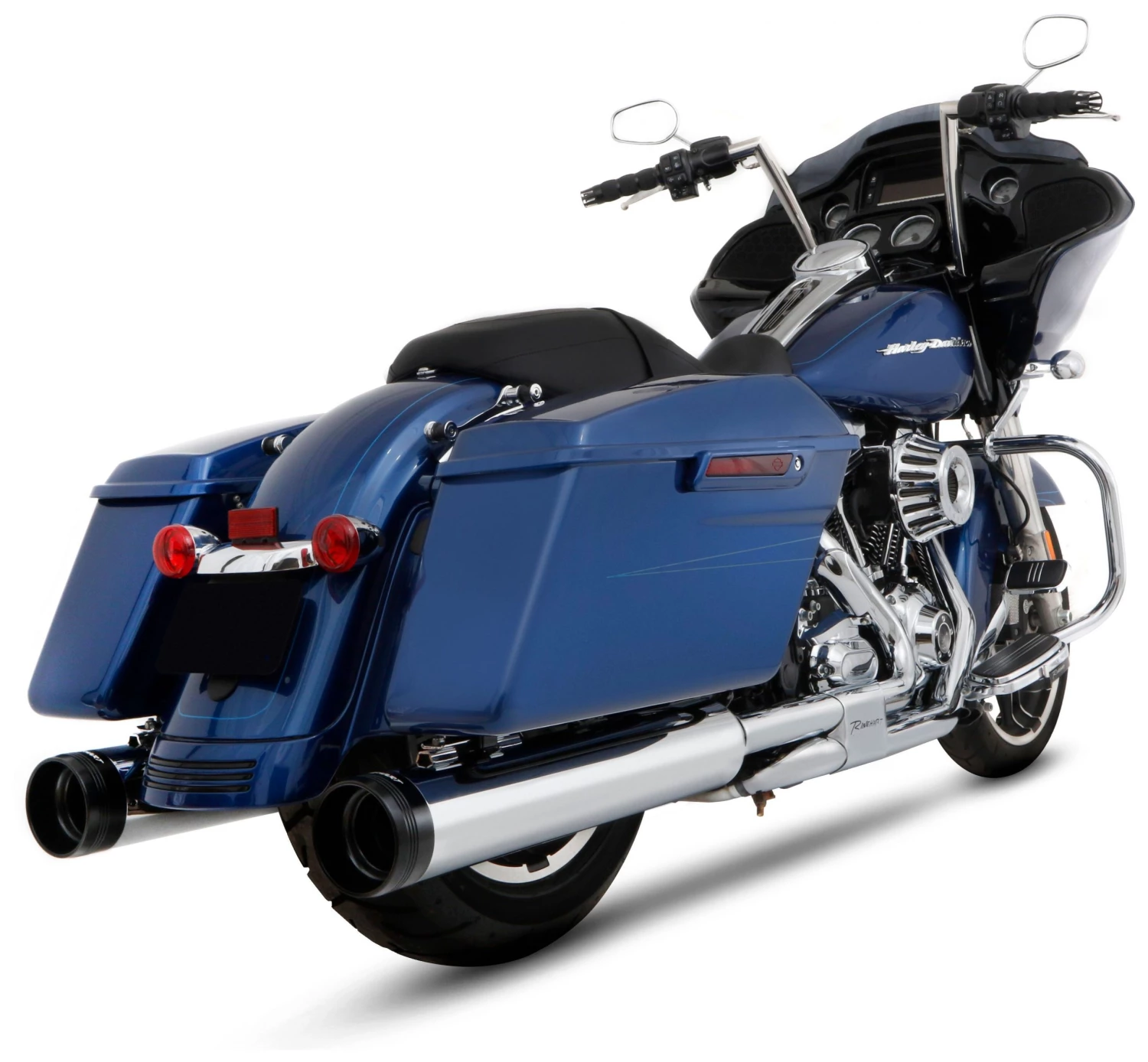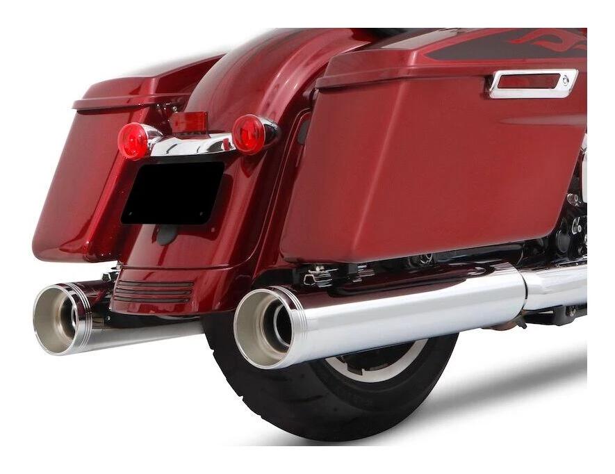 The sound you’ve been looking for, the performance you expect, the quality you deserve. Stunning 4.5″ slip-on mufflers for Harley-Davidson touring models will add the perfect mix of both performance and style to your motorcycle while delivering more of the iconic Rinehart Racing sound for baggers than ever before. Are you looking for an extreme sound that lets the engine scream? The new DBX45 is your answer. Proprietary technology in the internal design of these Slip-Ons maximize both torque and horsepower, letting the rider actually feel the performance. Built with a specially designed baffle, this offering from Rinehart gives your touring bike a heavyweight, head turning sound that’s sure to get the heart pounding. There is nothing quiet or tame about this muffler; it’s crisp and throaty – never muffled, high pitched, or hollow sounding. Tradition end caps feature a stripped down, back to the basics styling, reminiscent of simpler times.