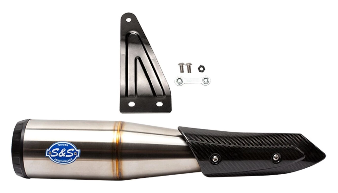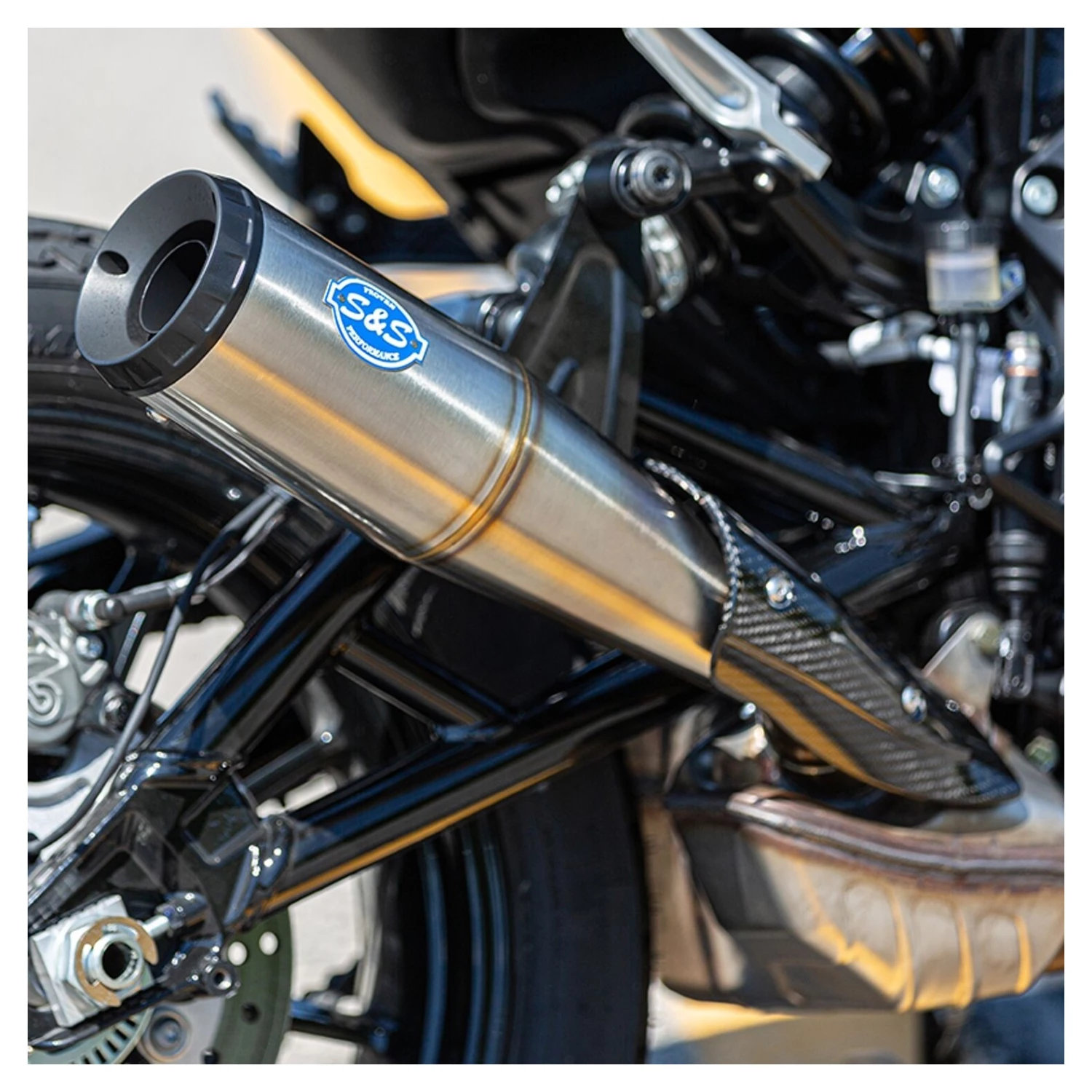 Complete the look of your Indian Flat Track Racer with the street ready slip-on inspired by the S&S pipe that’s been dominating the flat track circuit. Much like the race version, the Grand National Slip-on is a stainless body, aluminum tip and is wrapped in a carbon fiber shield. Reduced weight, cleaner shape and adjustable sound via their removable dB reducer are just some of the highlights in this well engineered exhaust.