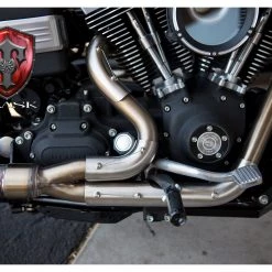 This dyno tested exhaust system is made from the highest quality 16 gauge stainless steel materials, mandrel bent, and then tig welded and gusseted for strength. Complete with custom heat shields including safety wired fasteners for a race inspired look. With potential gains from 8-10 horsepower on a stock H-D V-Twin, we are confident you will enjoy the smooth and consistent power band increase this exhaust will provide you. Â