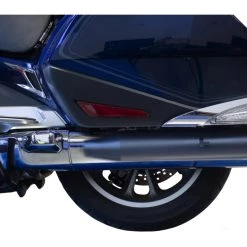 For the 2018+ Honda Gold Wing, the Comp S Slip-On Exhaust features Cerakote ceramic coated 4″ muffler bodies and a revised tight-wound spiral louvered core. The black, coated muffler bodies fit within your chrome, factory heat shields. Riders get a clean, quality appearance that looks factory fresh with sound and performance designed to accentuate the Wing’s signature opposed six. The Comp-S Exhaust maintains the OEM catalytic converter.