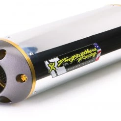 Two Brothers’ mid-pipes are manufactured from .035″ thick stainless steel and feature a polished satin finish. They exclusively use 304 stainless steel for its high rust resistance. After a few heat cycles the 304 steel turns a golden amber color, which is the signature of high quality stainless steel. The exhaust note produced by all of Two Bros exhaust systems is best described as being deep and throaty, without suffering from the shrill whine normally associated with other manufacturer’s straight through muffler canisters. But this bark would be pointless without a bad bite, so no matter which great sounding TBR’s exhaust you choose they will all reduce weight and deliver additional horsepower and torque.