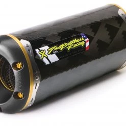 Each Two Brothers Racing M2 Slip-On features the same high level of quality construction and is designed to be fully-serviceable in the event of damage, routine maintenance or the occasional repack. All TBR’s M series slip-on exhaust systems feature the innovative V.A.L.E. system with CNC’ed aluminum inlets. The V.A.L.E. system is TBR’s revolutionary, patented method of attaching the muffler canisters to the mid-pipe without the use of springs or welding. This system allows the muffler assembly – exhaust mid-pipe and canister – to be positioned perfectly on the bike before all the mounting hardware is fully tightened. Once the canister and mid-pipe are properly aligned, the V.A.L.E. assembly locks the muffler canister to the mid-pipe assuring a perfect, leak-free connection.