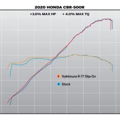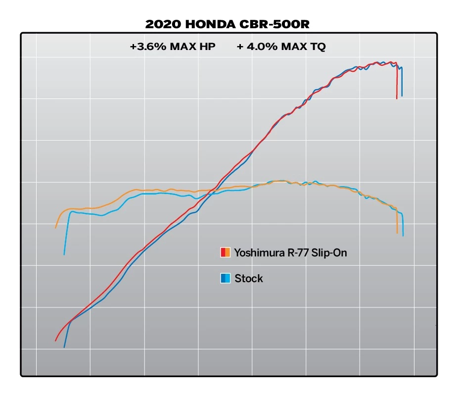 The Yoshimura R-77 Slip-On Exhaust was designed with the needs of the racer in mind. Using the feedback received from the Yoshimura Road Racing Team, their designers came up with a muffler that is constructed from lightweight materials, grants a significant boost in power thanks to its high-flow trapezoidal shape and gives your bike a great sound without being excessively loud. Â The muffler will help your engine make more power while reducing overall weight. The end result is an exhaust that will let your motorcycle reach its maximum potential!