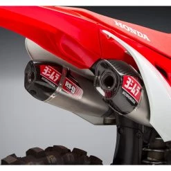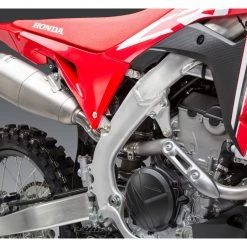 Yoshimura has been working tirelessly on the development of the RS-9T (Tapered) Exhaust with American Honda HRC’s engineers to achieve maximum performance and mass centralization which optimizes rider usability. Yoshimura achieved their goal by moving the RS-9T mufflers forward and relocating them under the side number plates. Working with Honda R&D in Japan and the HRC all Japan MX Racing Team, Yoshimura was able to deliver an exhaust that provides more tractable power with improved torque which in turn leads to better handling.