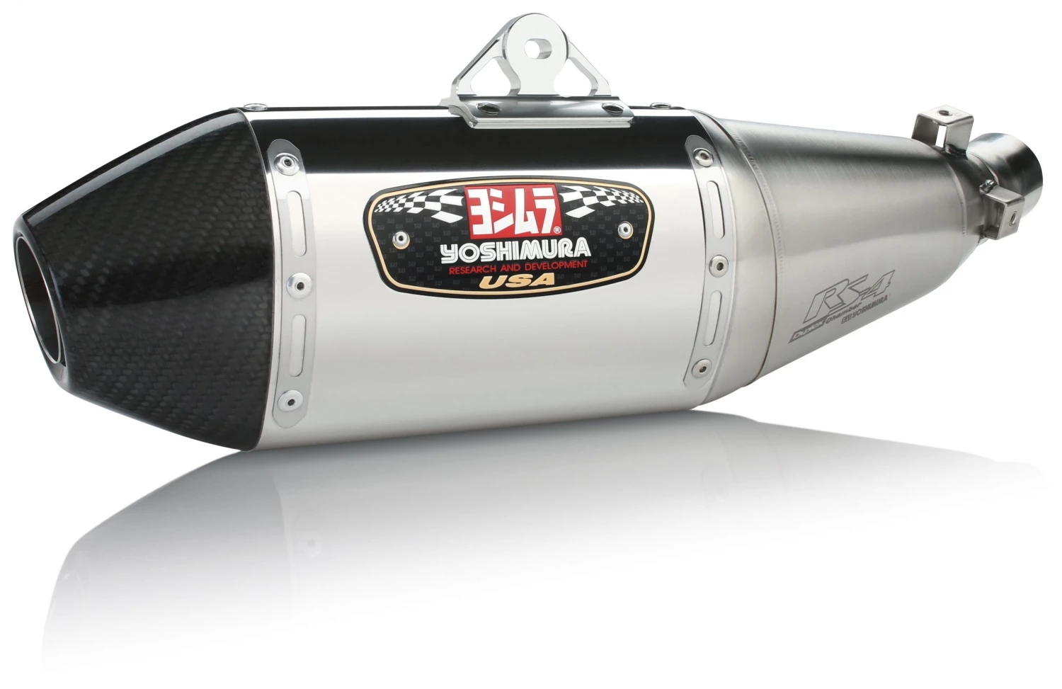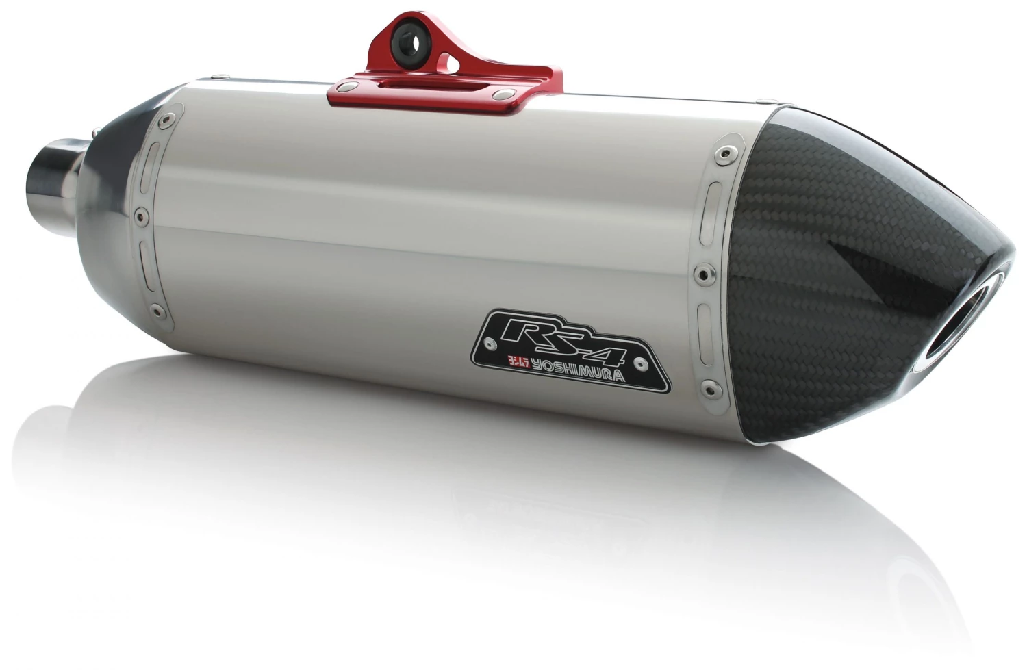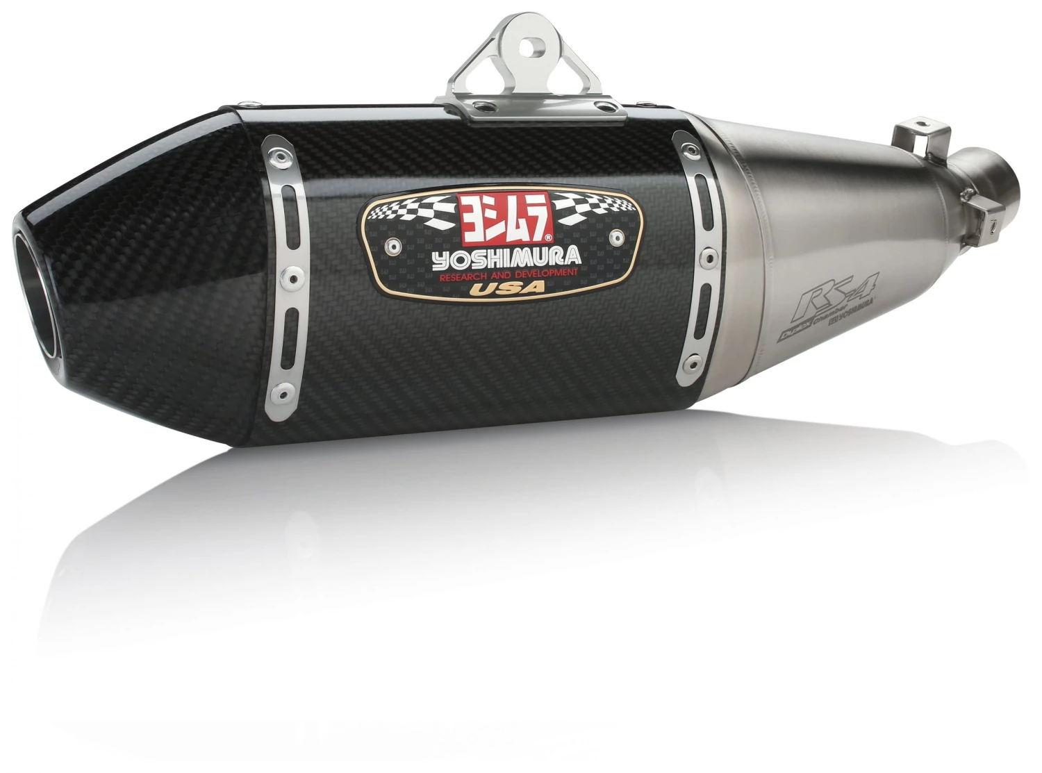 While the RS-4 Exhaust was debuted as Yoshimura’s premier exhaust for off-road racing applications, but R&D couldn’t stop there. They have mated this sophisticated and stylish muffler to a variety of bigger machines. The RS-4 is a pentagonal shaped muffler that features a carbon fiber cone end cap, two stage stepped baffle and striking good looks. The RS-4 muffler features a new front cap design that functions as a polyresonant chamber, thus creating a more quiet muffler with improved mid to top end power.