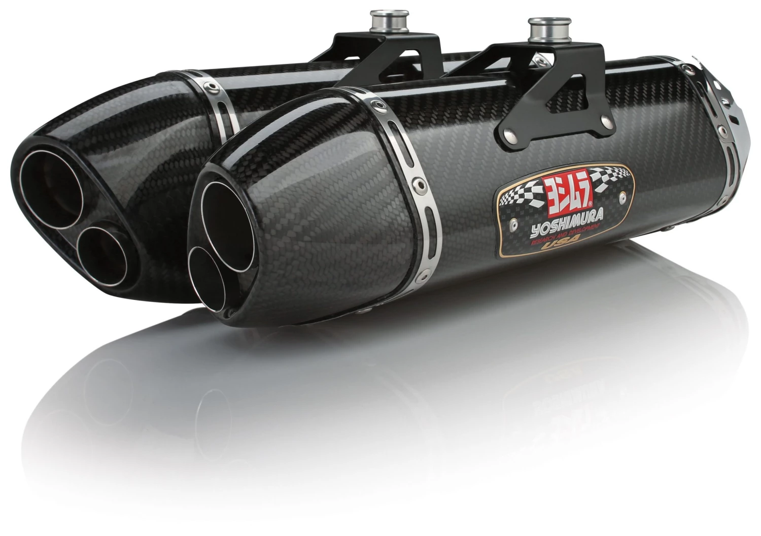 The Yoshimura TRC-D Slip-On Exhaust features the same muffler shape and sleeve as the highly popular TRC Exhaust. The TRC-D features a carbon fiber dual outlet that provides five percent more outlet area. This combined with increased muffler packing means sound output is reduced my three decibels. Power gains and be felt through both the low- and mid-range creating a smoother ride with a more responsive throttle.